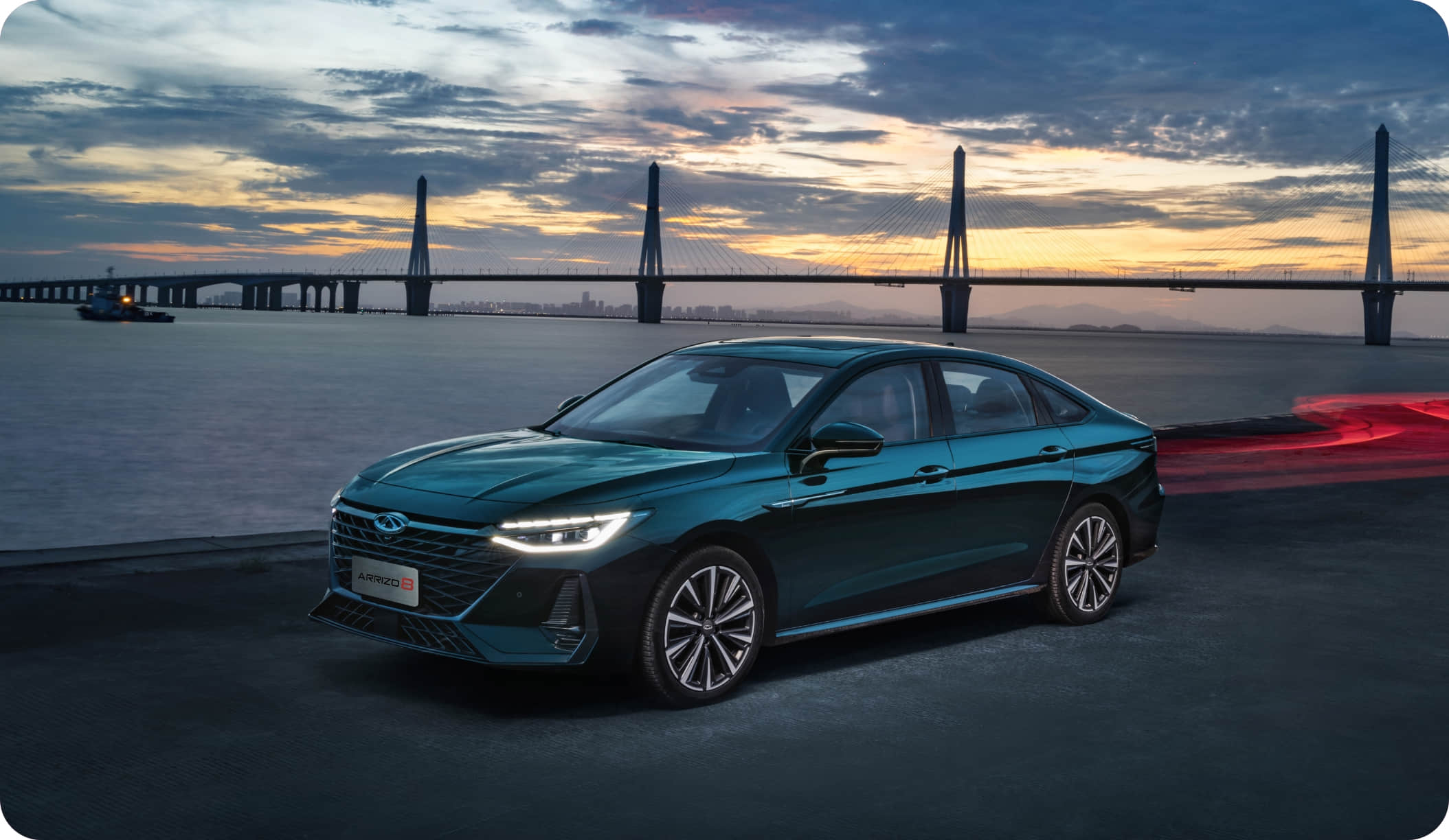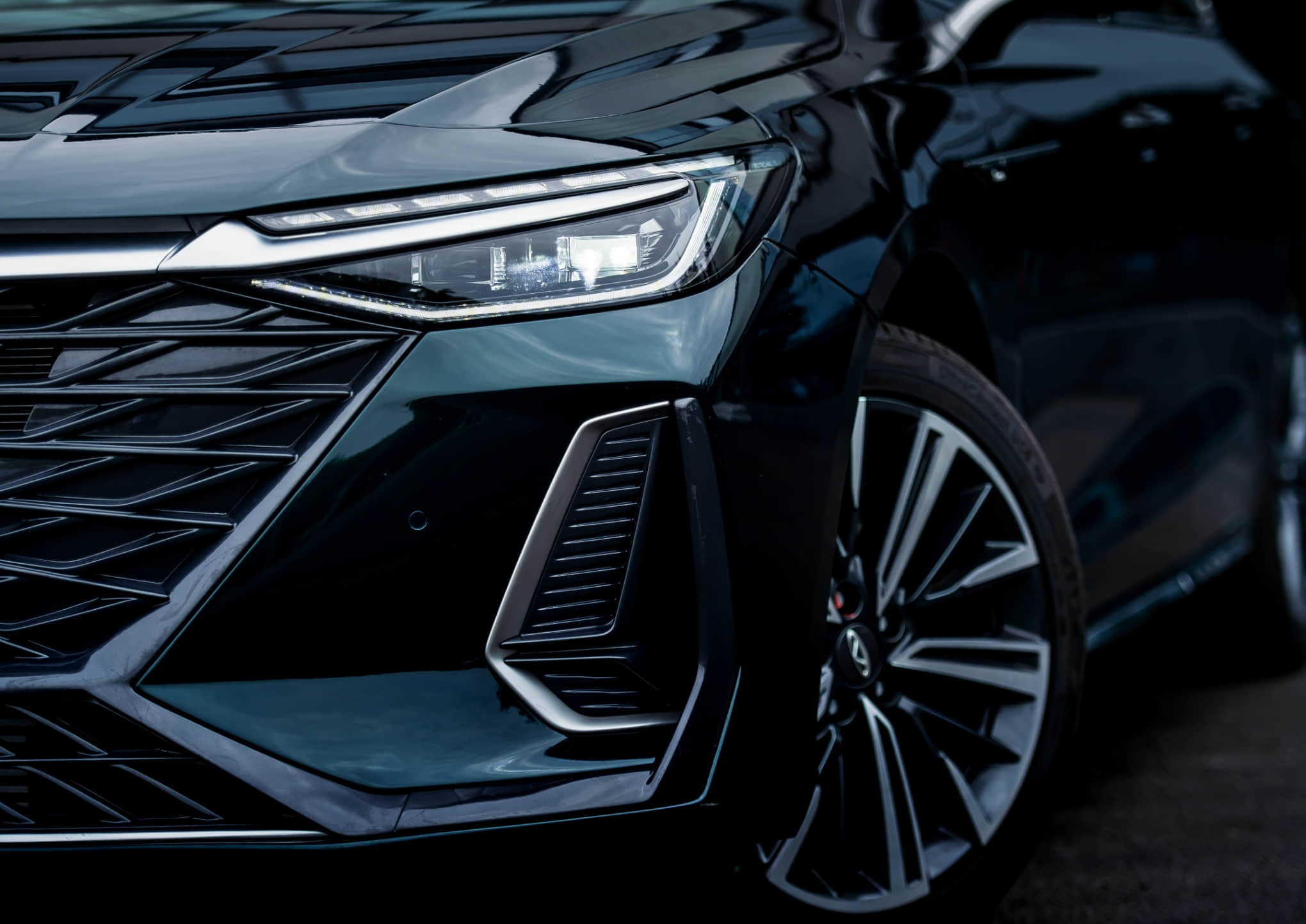Like liquid metal rippling in the tide, transforming industrial precision into fluid light and shadow. The finish reflects a premium mercurial luster, lending the sedan a sharp yet graceful flight silhouette.