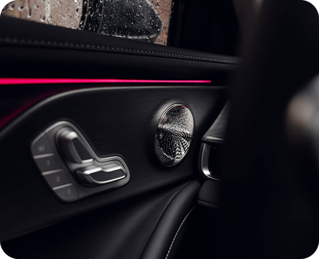 As deep as a dark pool at midnight—pure and unfathomable. Fine crystalline particles within the finish act like starlight dancing on water, flawlessly defining the sedan’s elegant silhouette.